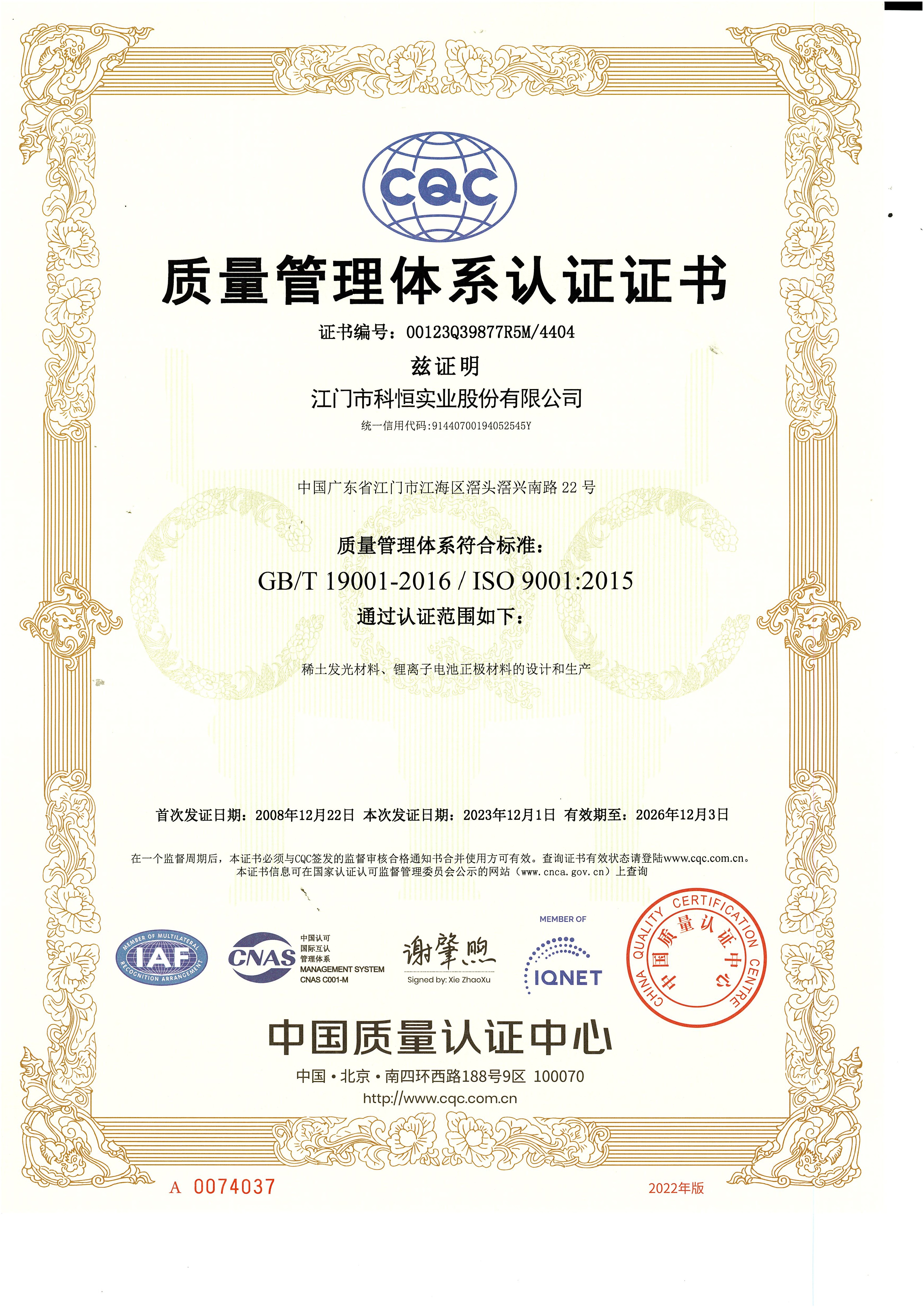 科恒堅(jiān)持“科技卓越、永恒追求、質(zhì)量第一、客戶至上”的質(zhì)量方針,設(shè)立各級(jí)質(zhì)量控制體系,保證產(chǎn)品質(zhì)量。公司先后通過了ISO9001質(zhì)量管理體系認(rèn)證和ISO14001環(huán)境管理體系認(rèn)證。公司以滿足客戶需求為宗旨,以卓越的科技成果、完善的制造過程,制造一流的產(chǎn)品、增值的服務(wù)、共享的價(jià)值,讓客戶滿意。